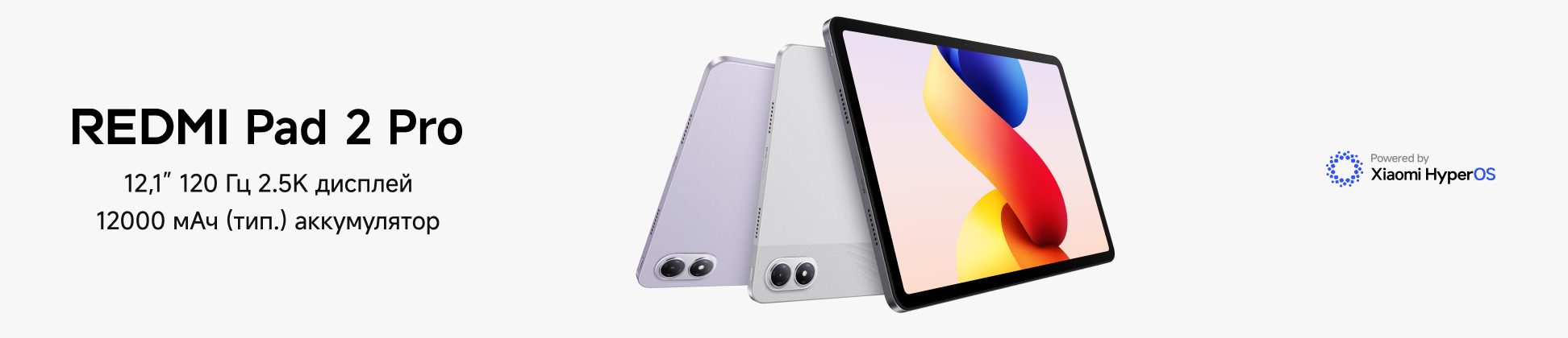REDMI Pad 2 Pro — это универсальный планшет для развлечений и работы с 12,1-дюймовым дисплеем высокого разрешения 2560×1600, который обеспечивает детализированное и визуально насыщенное изображение. Он оснащен мощным процессором Snapdragon 7s Gen 4, созданным по 4-нм технологии, что гарантирует плавную работу даже с ресурсоемкими приложениями и играми. Благодаря емкому аккумулятору на 12 000 мАч устройство работает без подзарядки несколько дней, а поддержка быстрой зарядки 33 Вт позволяет быстро восстановить энергию. Четыре динамика создают объемное звучание, усиливая эффект присутствия при просмотре контента. Металлический корпус сочетает прочность и эргономику, а наличие разъема 3,5 мм и слота для microSD расширяет возможности подключения аксессуаров и увеличения памяти.