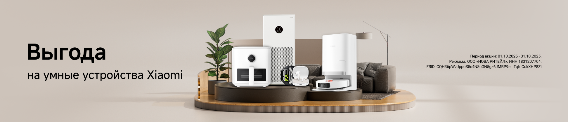 Ощутите силу интеллекта с умными устройствами Xiaomi! Приобретайте роботы-пылесосы, портативные аккумуляторы и другие инновационные устройства от Xiaomi со значительными скидками. Скидки действуют с 1 по 31 октября 2025 года.