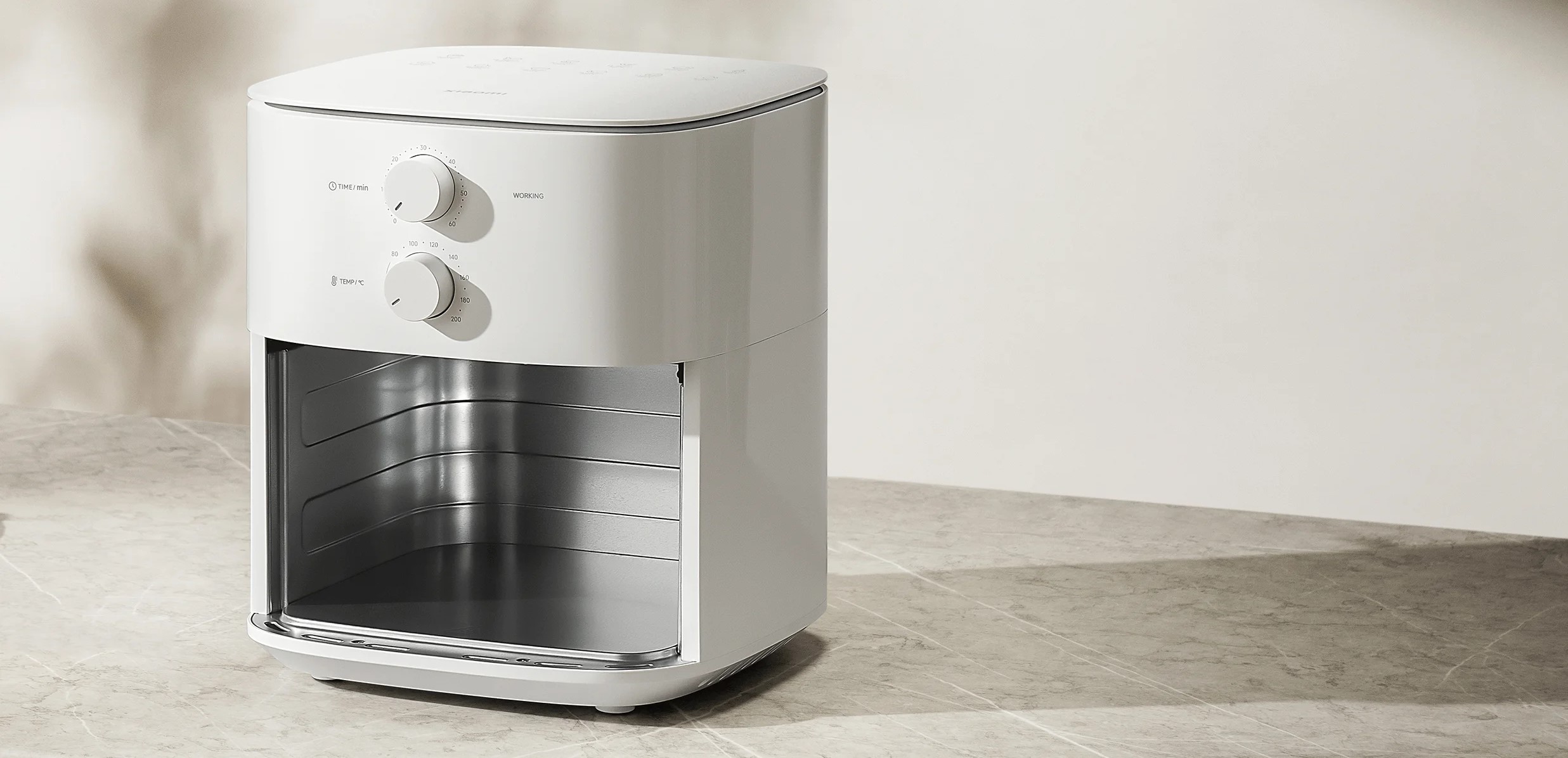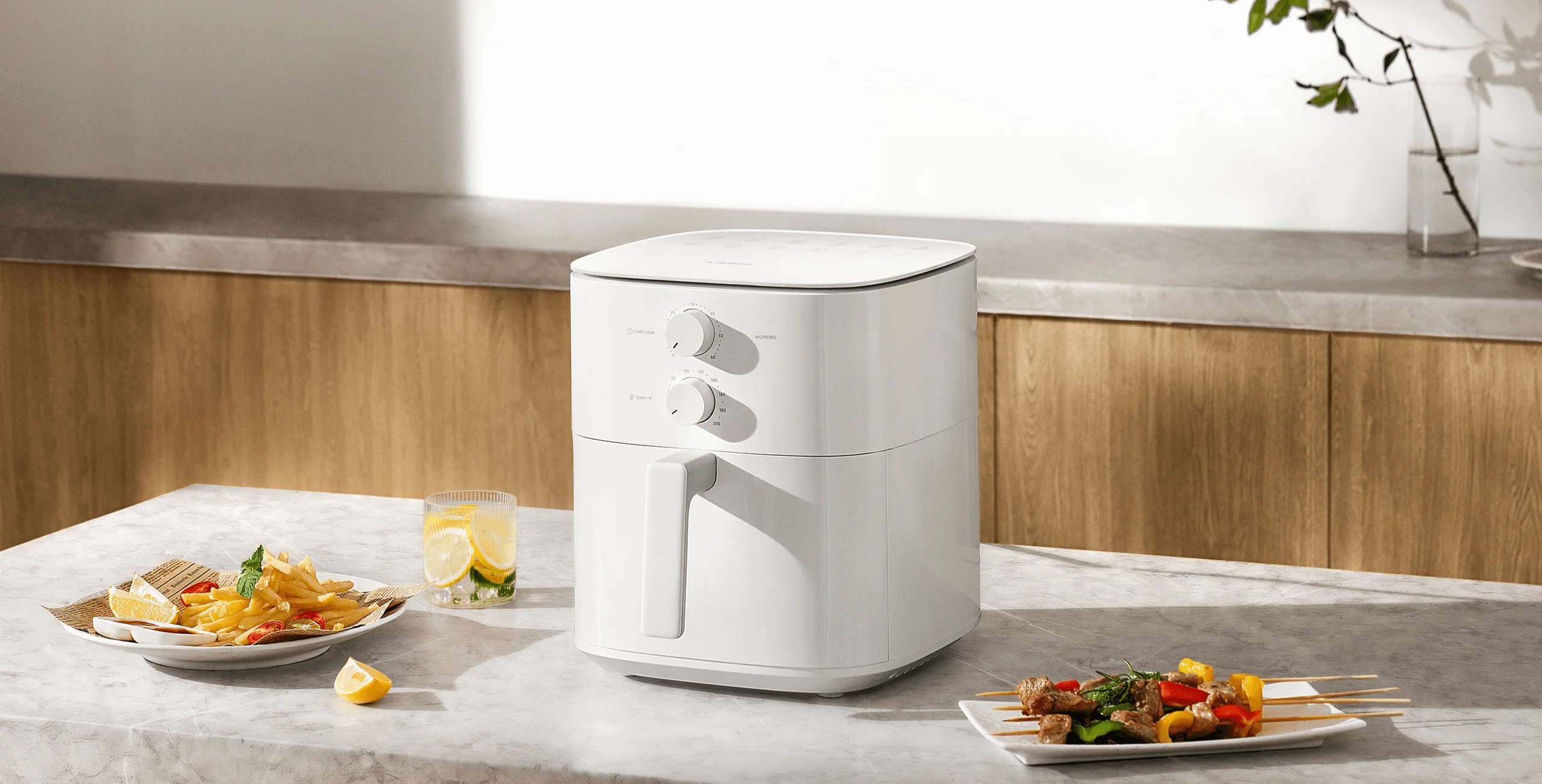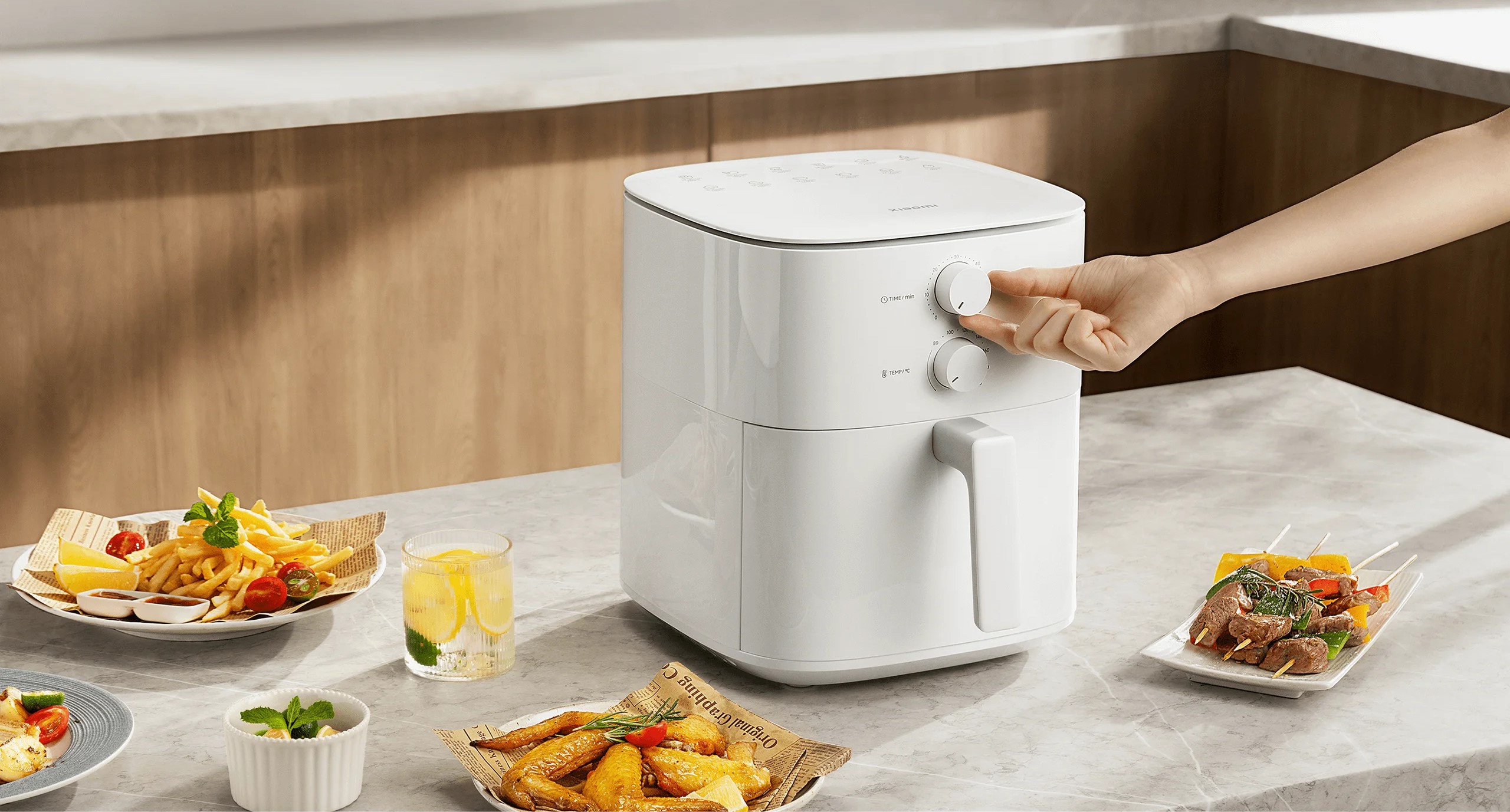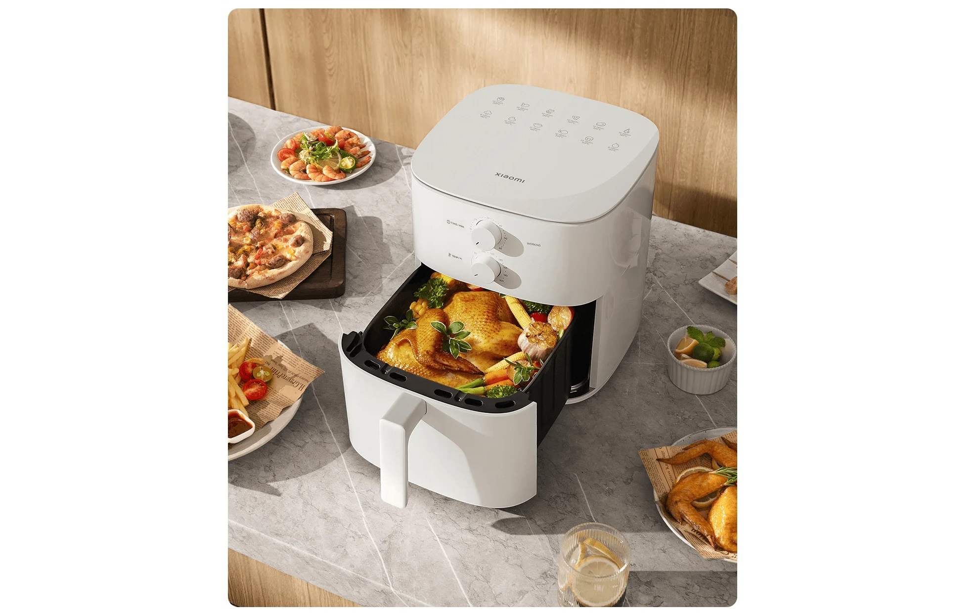 Аэрогриль Xiaomi Air Fryer Essential объемом 6 литров обеспечивает равномерное приготовление пищи без необходимости переворачивания. В основе технологии лежит круговой нагрев и инновационная система вентиляции, что позволяет добиться идеально хрустящей корочки со всех сторон. Круговой нагрев и вентиляция. Вентилятор оснащен 9-тью двукрылыми спиральными лопастями. Воздух циркулирует с максимальной скоростью 2350 об/мин. Это позволяет создать мощный поток горячего воздуха, который равномерно распределяет тепло по всей поверхности продуктов. Вращающая ветровая корзина для жарки под углом наклона 360° обеспечивает непрерывный обдув горячим воздухом.
