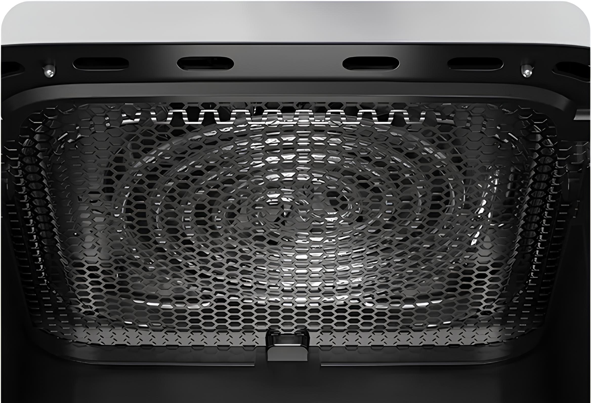 Благодаря увеличенному объему чаши в аэрогриле можно легко зажарить целую курицу. Модернизированный воздуховод улучшает циркуляцию воздуха и распределение воздушных потоков, направляя горячий воздух непосредственно в корзину для жарки, равномерно нагревая ее без необходимости переворачивания готовящегося блюда.