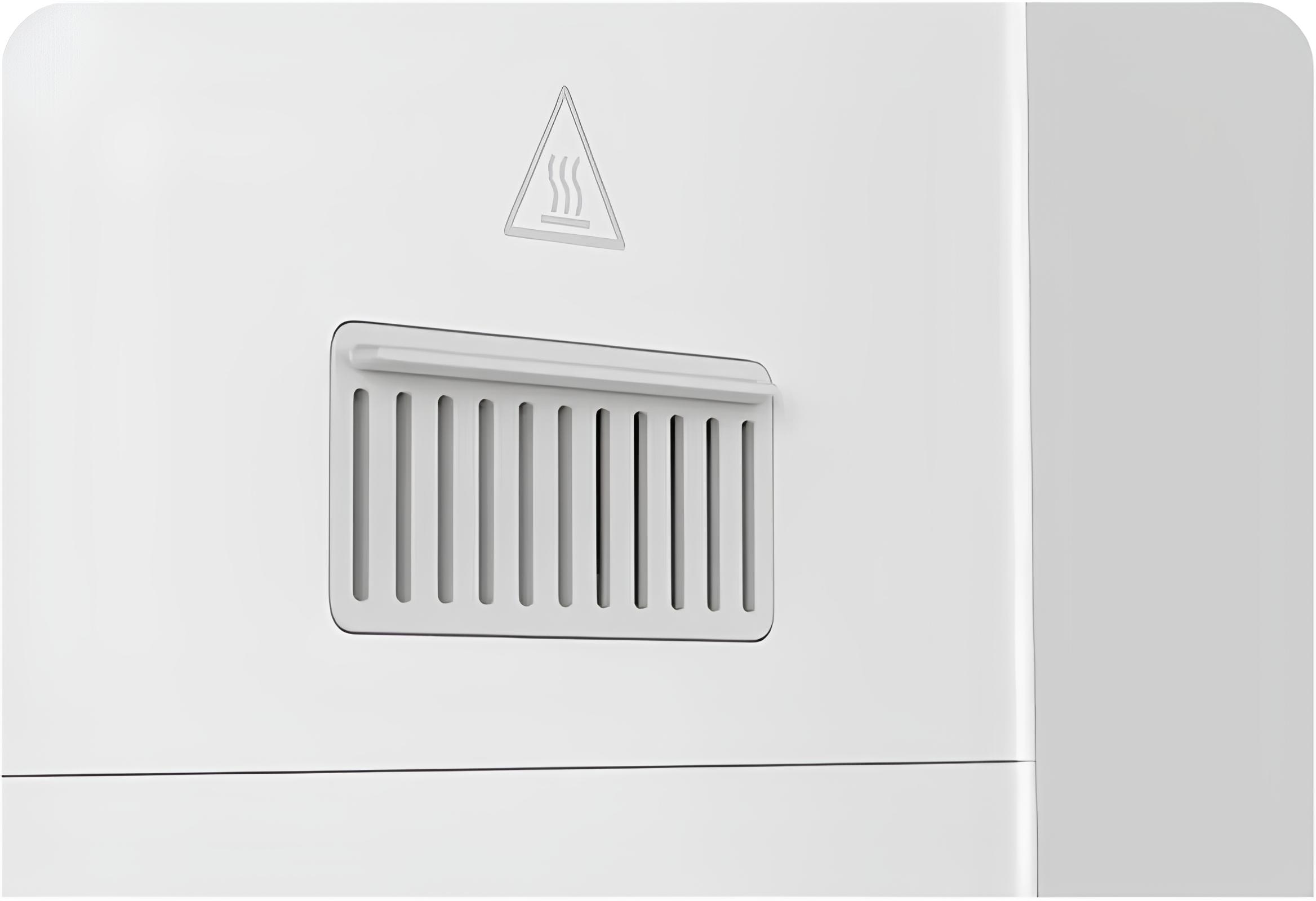 Благодаря вентиляционным отверстиям на корпусе аэрогрили обеспечивается быстрое охлаждение устройства, что дает увеличенный срок службы.
