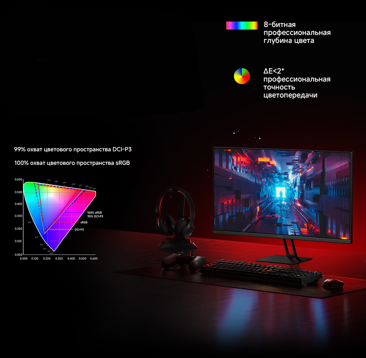| Комплектация | адаптер питания, документация, кабель DisplayPort, кабель USB Type-A - Type-B |