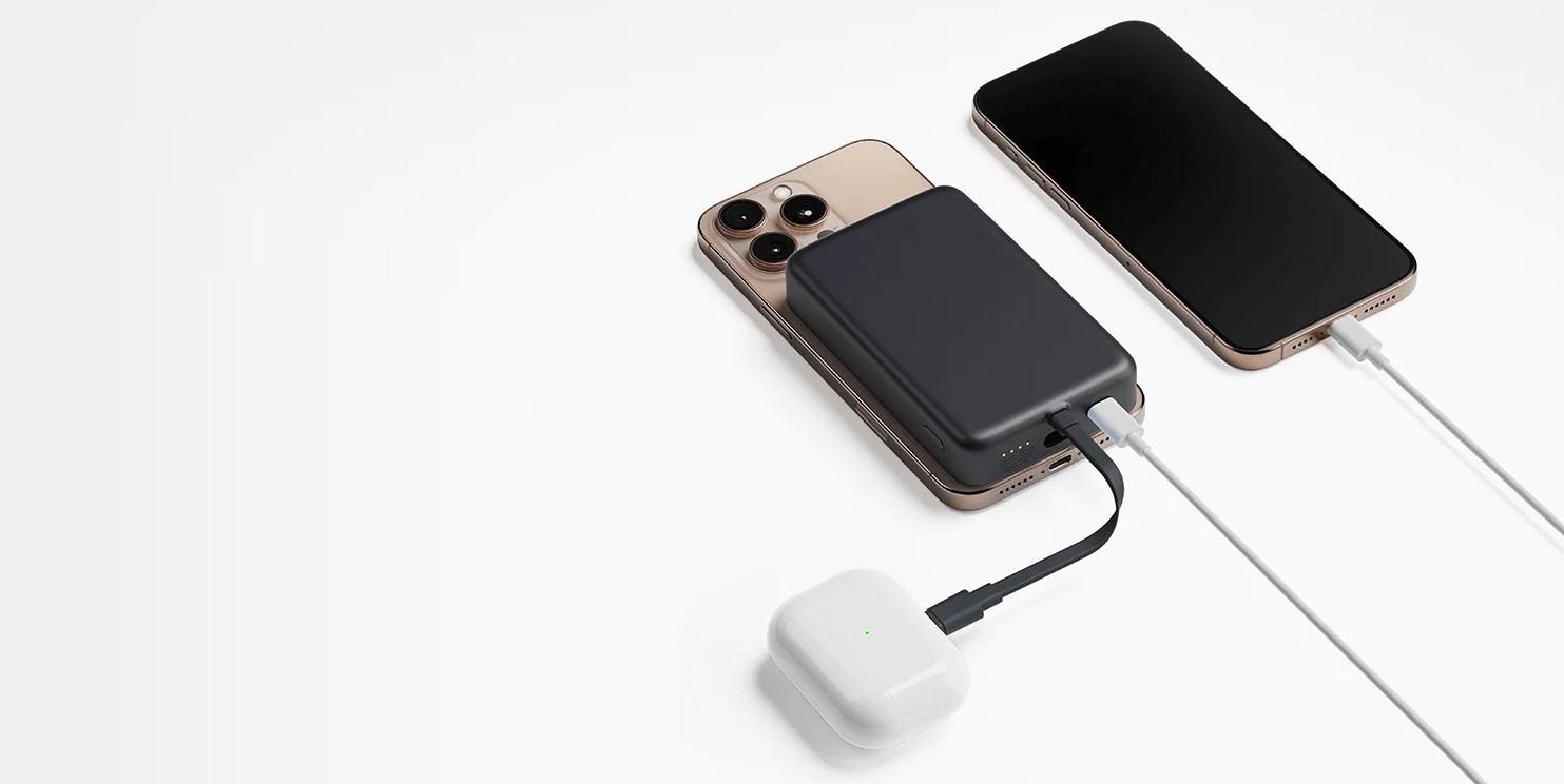 Power Bank поддерживает мощность до 33 Вт, обеспечивая быструю зарядку смартфонов, планшетов и других гаджетов. Также реализована функция беспроводной зарядки, благодаря встроенным магнитам, которые надёжно фиксируют устройство. Совместимые смартфоны можно просто приложить к корпусу — без лишних проводов и адаптеров.