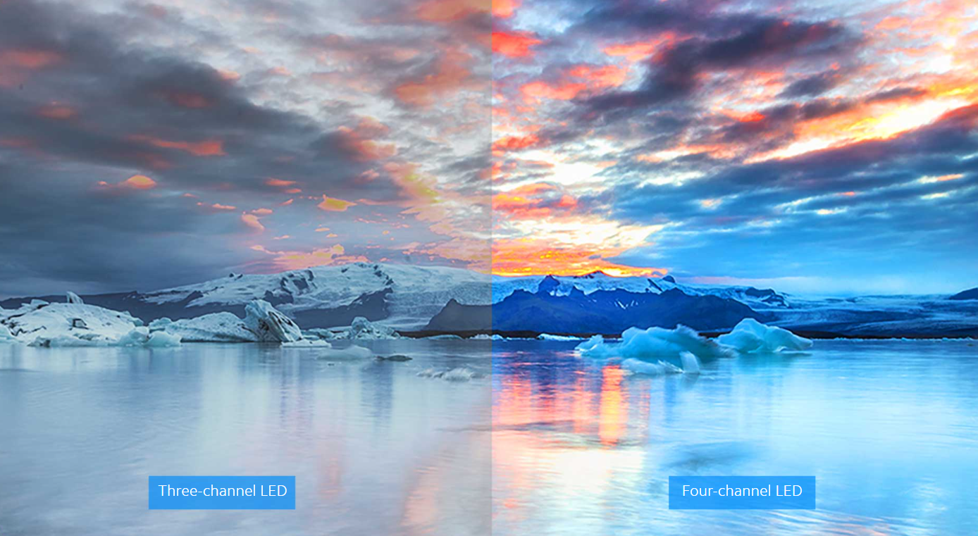 Технология улучшения яркости благодаря четырехканальной системе LED RGB+BPПо сравнению с традиционной трехканальной светодиодной проекцией при добавлении канала синего света цветовое пространство Rec.709 превышает 154%, чтобы цвета ощущались более реалистичными. Проектор также поддерживает декодирование HDR10.