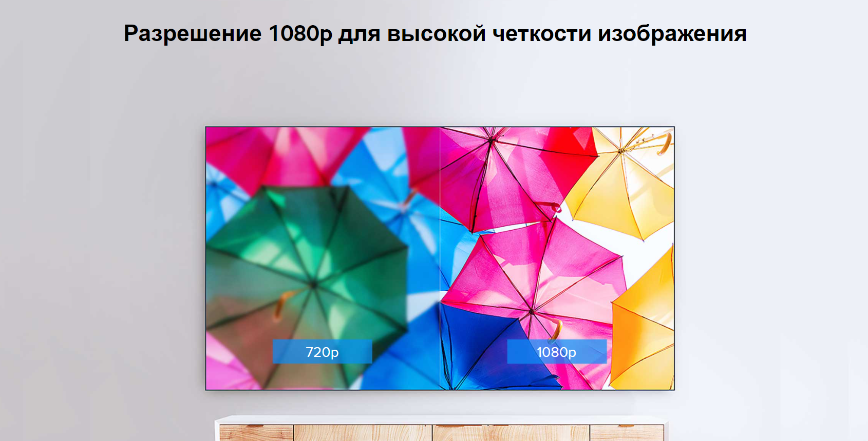 Разрешение 1080p для высокой четкости изображенияПортативный проектор Mi Smart Projector 2 проецирует изображения в разрешении 1920x1080 Full HD (1080p), обеспечивая превосходное качество картинки.