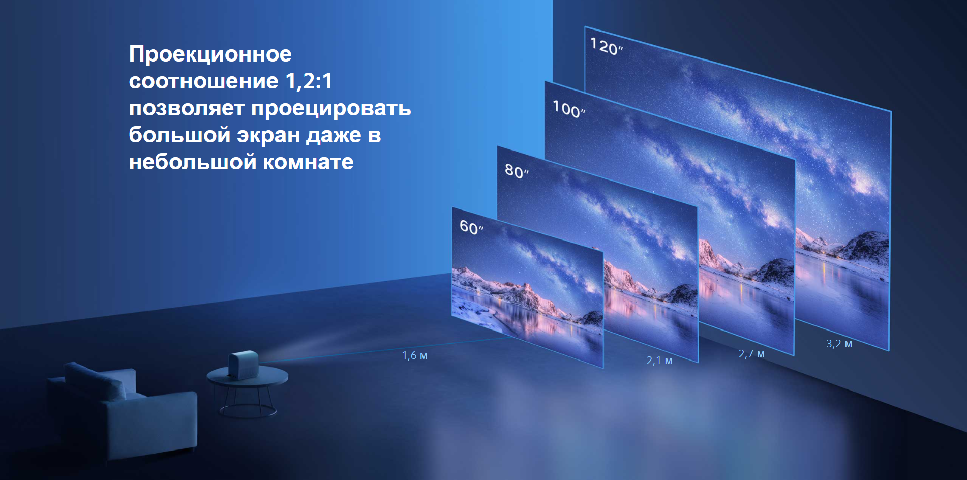 .png) Проекционное соотношение 1,2:1 позволяет проецировать большой экран даже в небольшой комнате