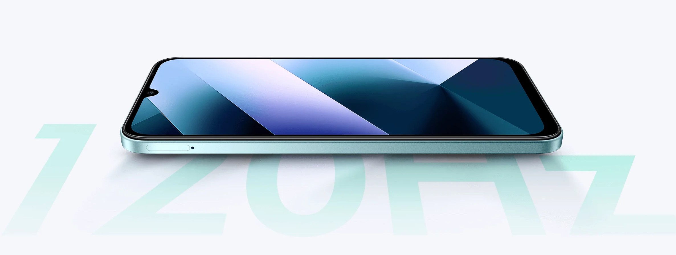 POCO C85 сразу обращает на себя внимание крупным 6.9-дюймовым экраном, заключённым в тонкий корпус толщиной всего 7.99 мм. Смартфон весит 205 г и удобно ложится в руку, несмотря на габариты. Задняя крышка выполнена из пластика со стеклянными элементами, а изящные переливы подчёркивают современный стиль устройства.