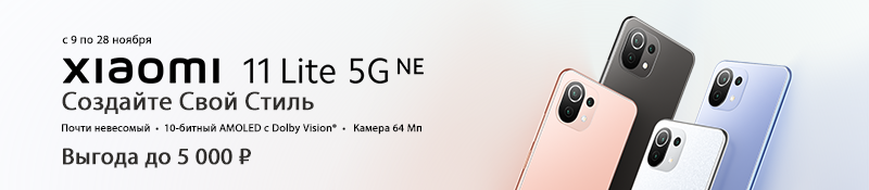 Только с 9 по 28 ноября смартфон Xiaomi 11 Lite 5G NE можно приобрести с выгодой до 5 000 рублей.