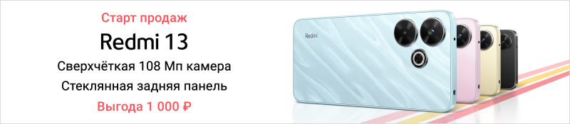 Новый смартфон уже в продаже с выгодой 1000 рублей!  Redmi 13 — это смартфон, который предлагает потрясающее качество фото и видео благодаря своей основной камере с разрешением 108 Мп. Элегантный стеклянный дизайн и стильный внешний вид не оставят равнодушными, а гладкая задняя крышка гарантирует надёжный хват в руке.