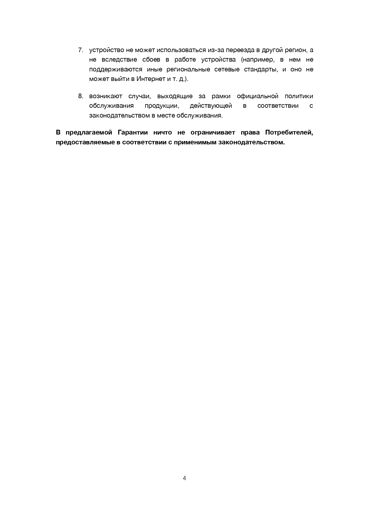 Никакие положения настоящей коммерческой гарантии не ограничивают права Потребителей в соответствии с применимым законодательством.