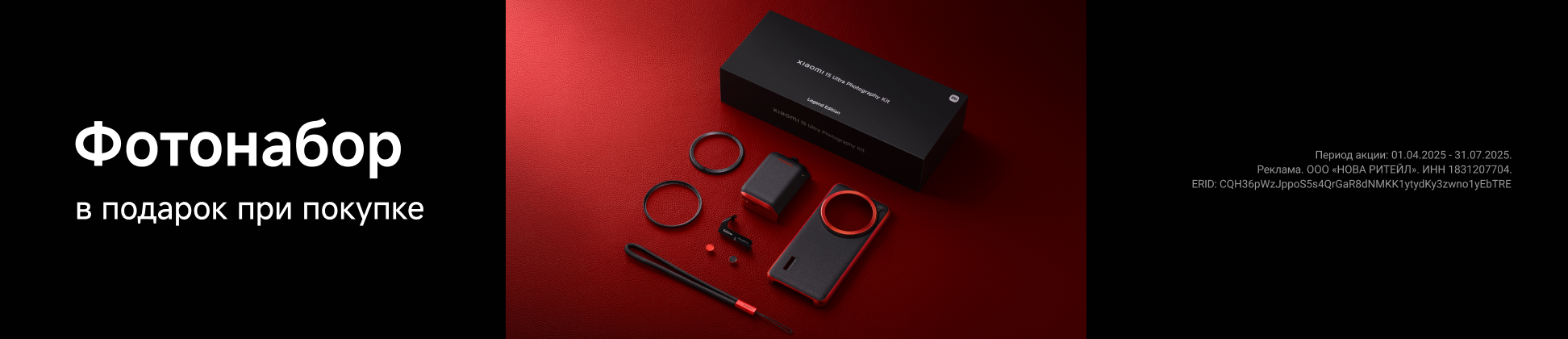 Для поклонников фотоискусства с 1 апреля по 31 июля действует специальное предложение: комплект Photography Kit Legend Edition в подарок при выборе Xiaomi 15 Ultra.